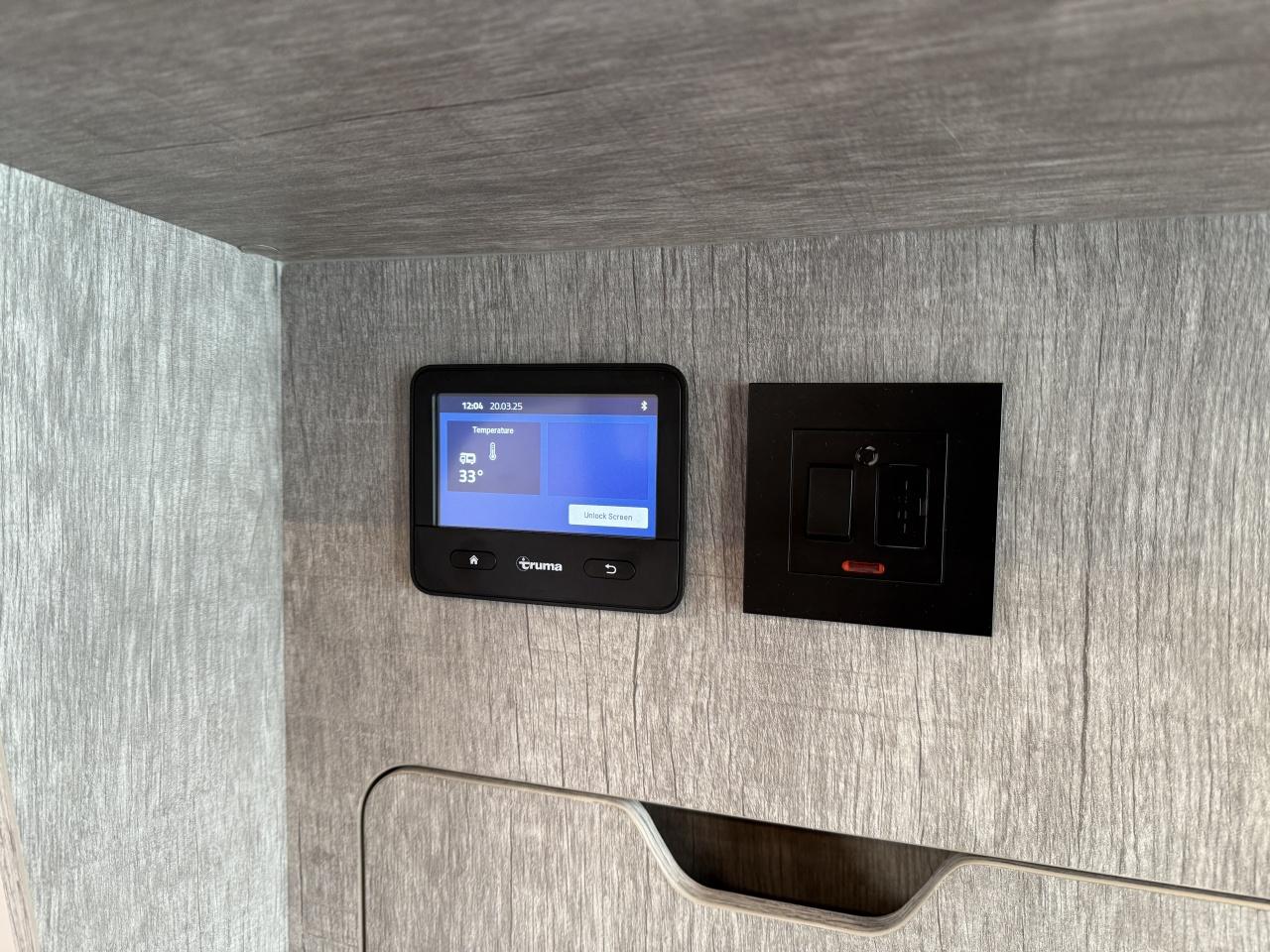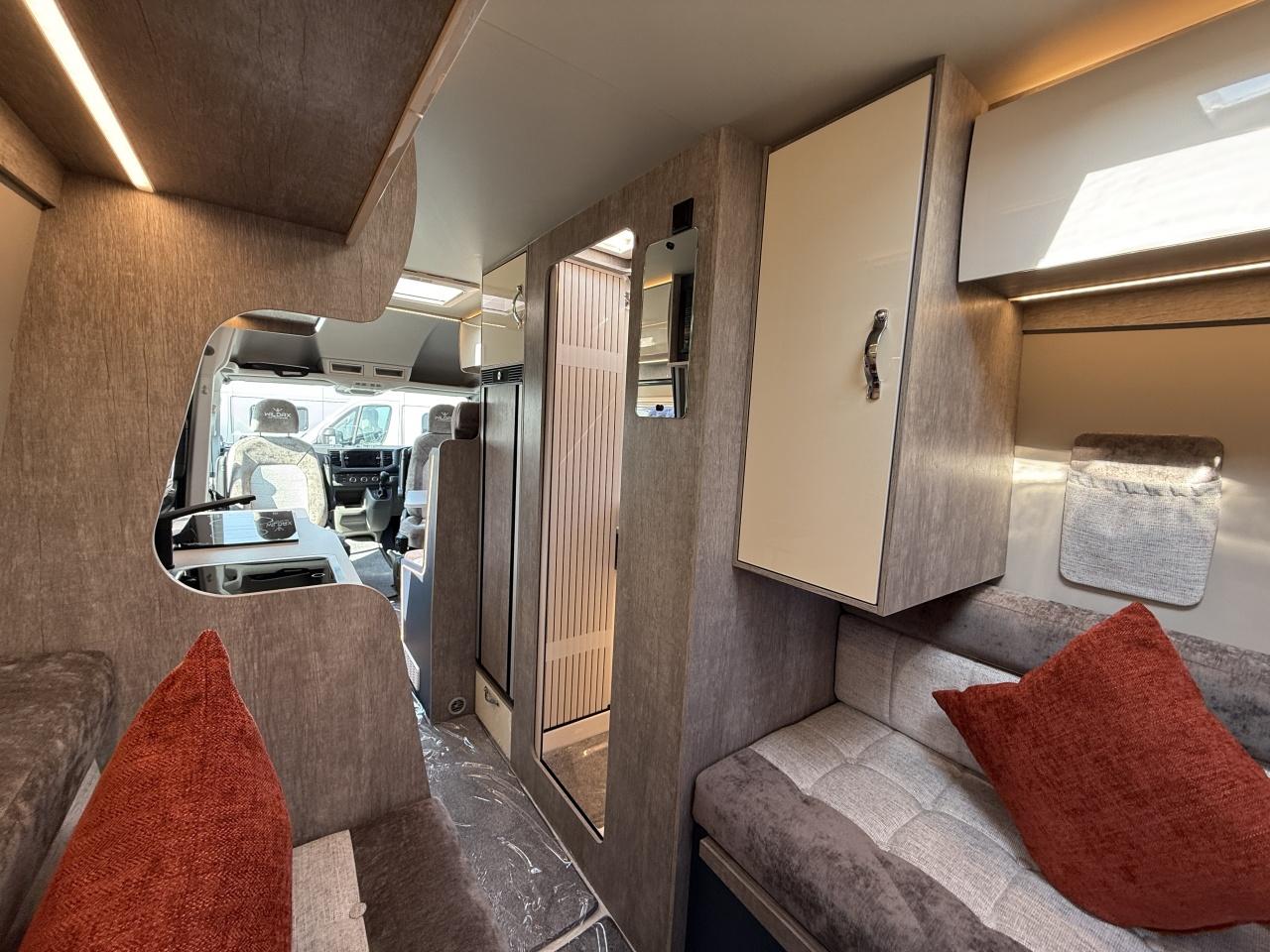 The Altair is fitted as standard with an all in one 160ah Lithium leisure battery system which power the lol 12v systems and through a built in 3kW inverter will power all your cooking and other needs without being plugged into the mains. The system is charged from the 400W solar system whilst in the wild, from the engine via the ‘supercharger’ whilst driving (up to 80 Amp!) or from the mains whilst parked up. Cooking is offered via the 2 induction ring hob and microwave. There is a large 154 litre all electric fridge/freezer. Heating and hot water are provided by the Truma 4D, diesel and mains electric powered system.