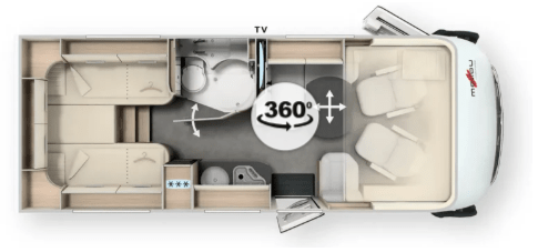 Its short vehicle length of under seven metres makes the Malibu I 430 KB-LE the perfect travel companion. You can still holiday in comfort, thanks to the large L-shaped lounge seating area with fold-out side bench seat, space-saving galley kitchen and private dressing room, as well as lengthways single beds with large sleeping area.